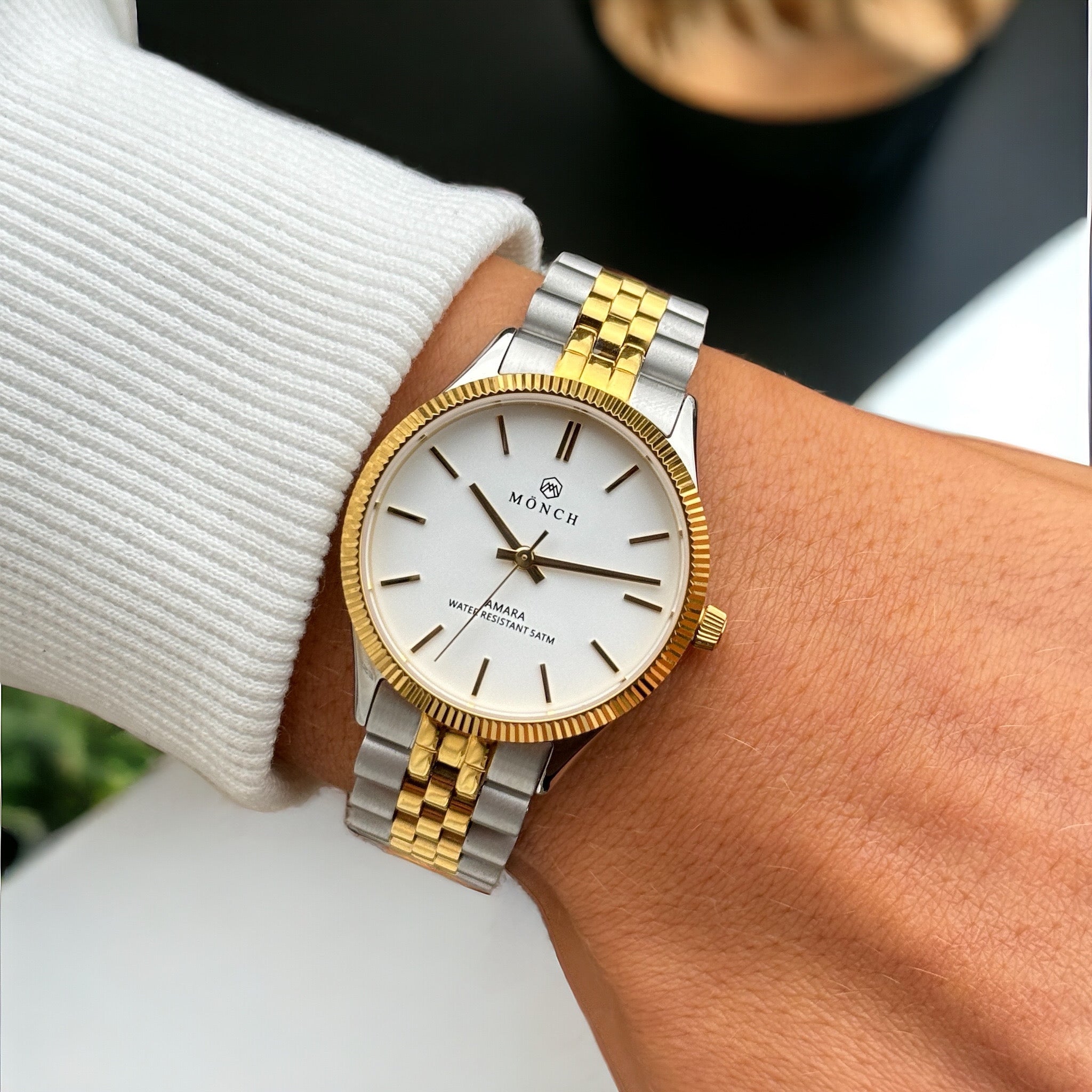 The Amara was crafted as a celebration of elegance, inspired by the legacy of classic design and named after the Latin word for "everlasting". The Amara embodies a sense of continuity and grace that transcends generations. Each feature of the Amara was carefully chosen to reflect its timeless appeal—from the fluted bezel, reminiscent of heritage jewellery, to the multi-link bracelet that lends a luxurious, seamless fit.