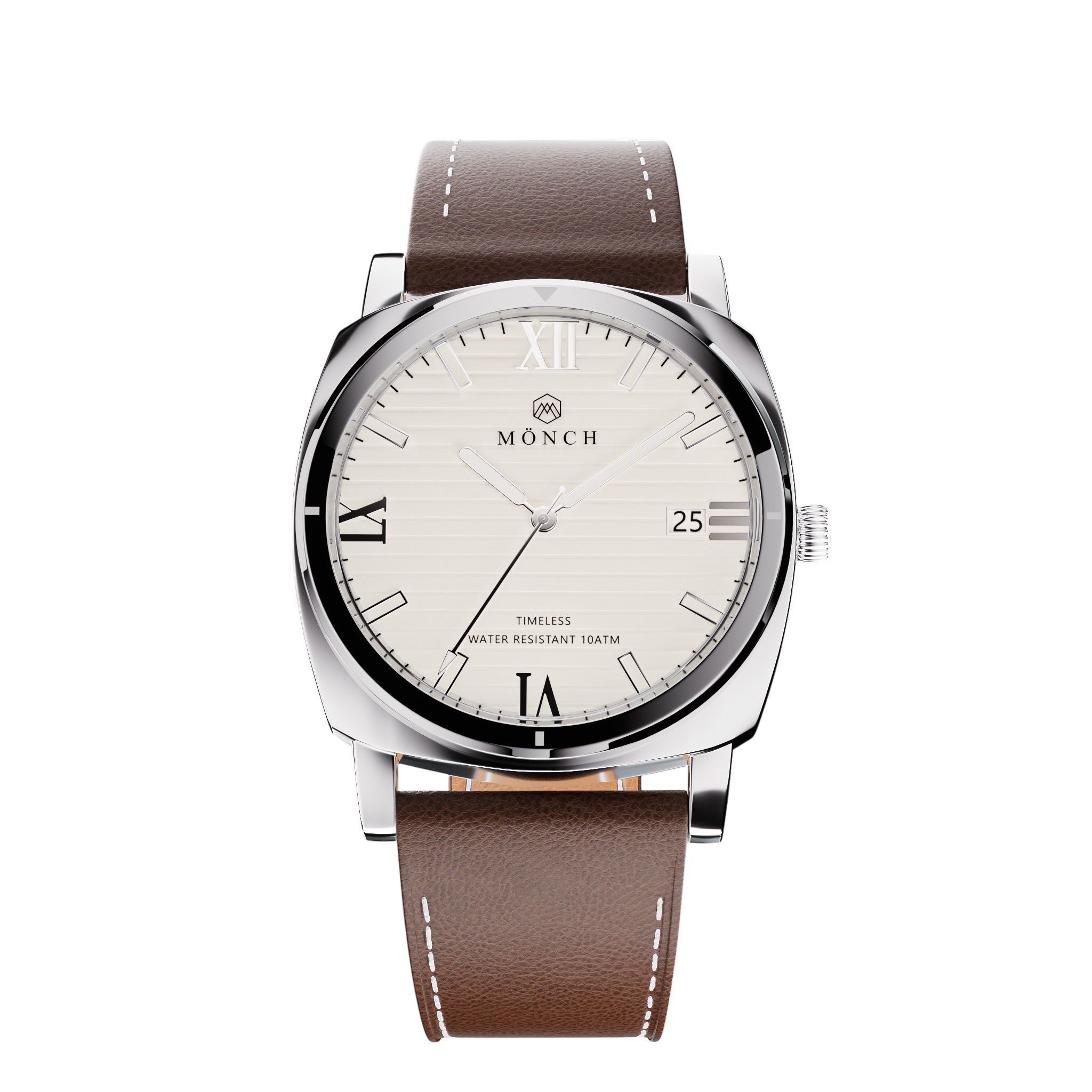 Timeless, Brown Leather-Men's White Dial Watch - 40mm - 10ATM Water Resistant - MÖNCH